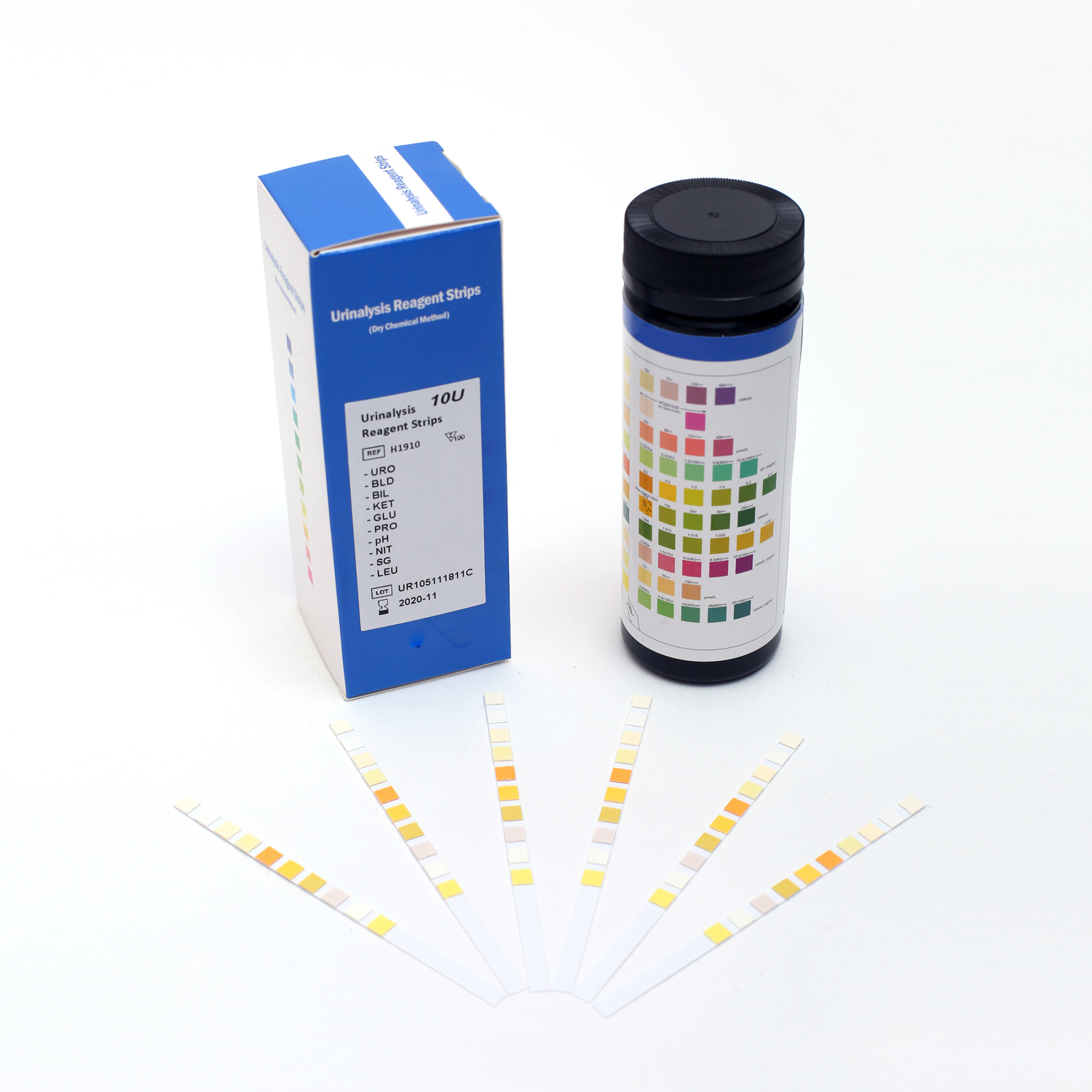 URS-10 (URO/BLD/KET/ GLU/PRO/pH/BIL/NIT/SG/LEU) | Urine | Strip | 100T 5.0mm | H1910 |